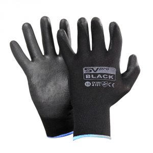 SVpro® Black on PU -pinnoitettu saumaton polyester -sormikas. Hyvä yleiskäsine moneen eri työhön, esim. varastotyöhön!